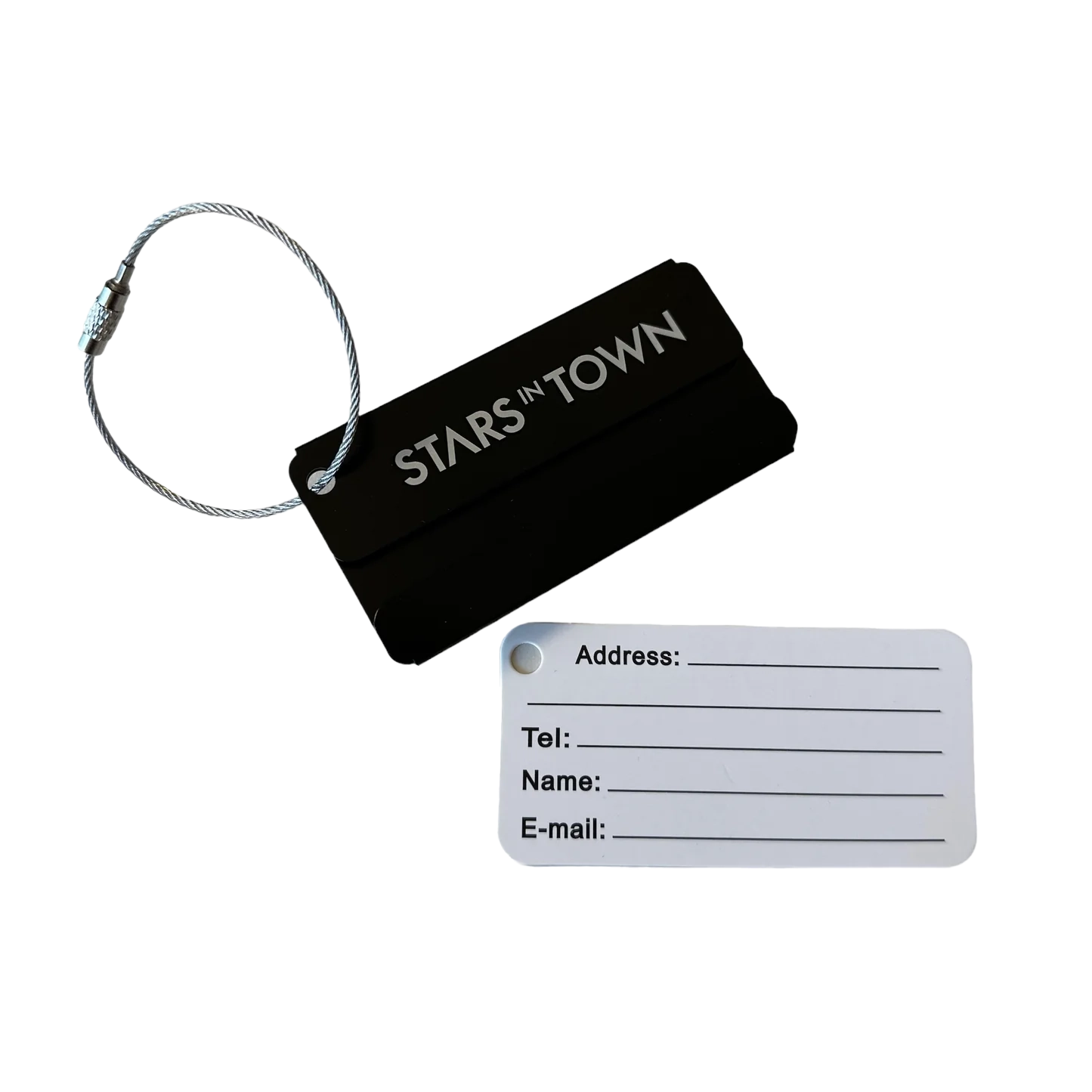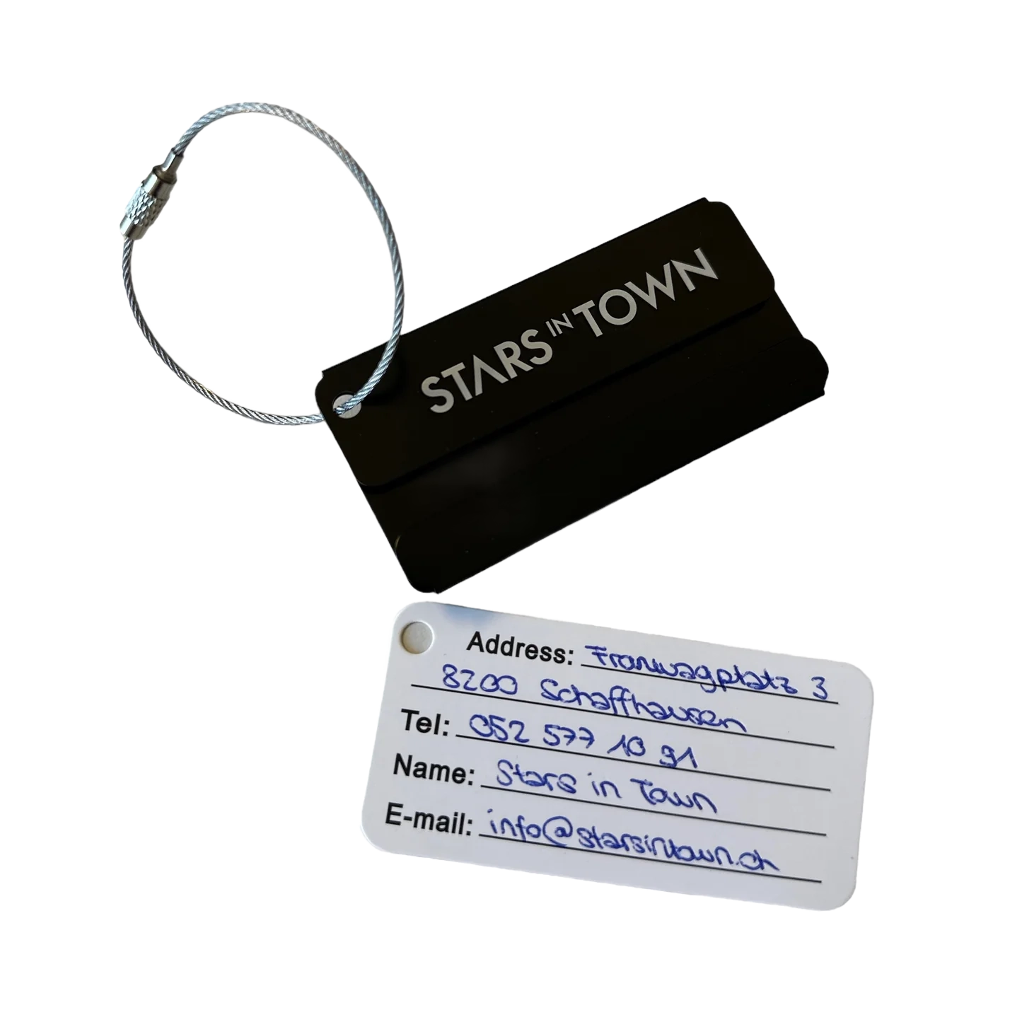 Praktischer Kofferanhänger mit Stars in Town Logo